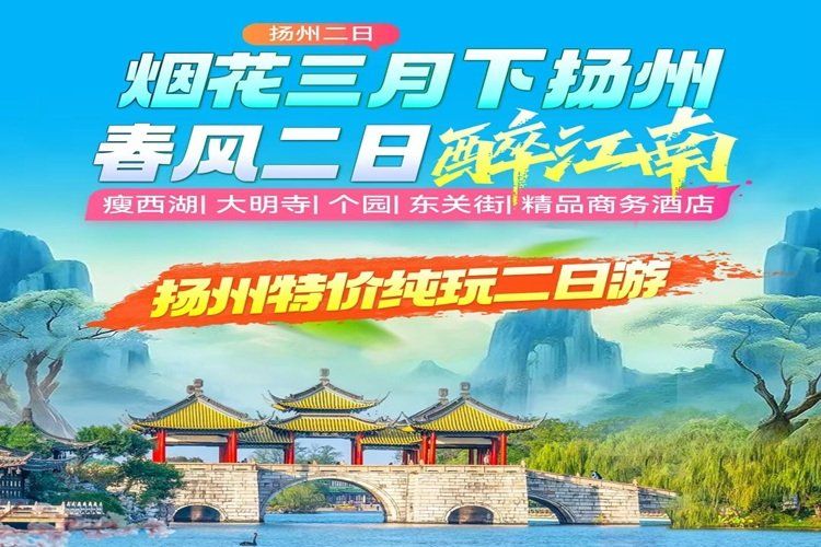 扬州瘦西湖+大明寺+个园+东关街纯玩二日 (特价)【烟花三月·邂逅广陵】+精品商务酒店