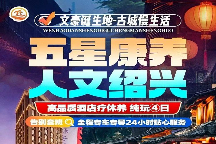 <山水绍兴>文豪诞生地-水上威尼斯-古城慢生活纯玩康养度假4日(三晚高钻康养酒店,赠送3早4正餐)鲁迅故里+安昌古镇+中国黄酒博物馆+仓桥直街+八字桥+柯桥古镇